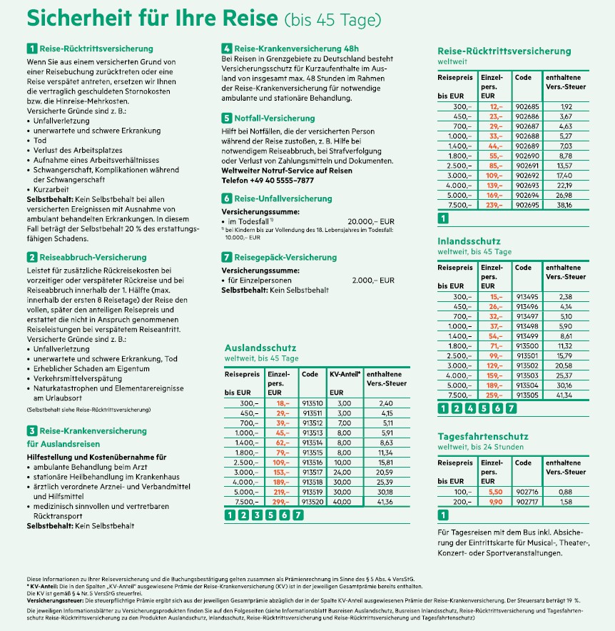 Bei allen Reisen empfehlen wie Ihnen den Abschluss Reiser-Rücktrittskostenversicherung oder eines Versicherungspaketes , die wir in Zusammenarbeit mit der HANSE MERKUR Reiseversicherung AG anbieten.